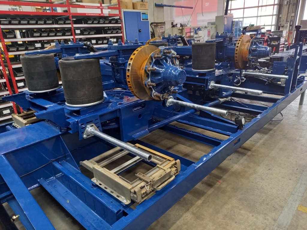 Der nächste Schritt ist die Lackierung. Markus Huber: «Die Stahlteile – wie Fahrgestell oder Anbauteile – werden sandgestrahlt, spritzverzinkt, grundiert und im gewünschten Farbton lackiert.» Dann folgt bereits die Endmontage. Dafür baut DOLL den Auflieger wie ein neues Modell zusammen und setzt dabei Hydraulik-, Zentralschmier-, Brems- und Luftfederanlage sowie die Beleuchtungsanlage der neusten Generation ein. Die DOLL-Endabnahme sichert die Qualität des Aufliegers. Auf Wunsch wird eine Haupt- bzw. Sicherheitsprüfung durchgeführt.